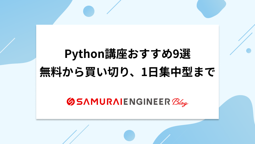 今回紹介するおすすめ講座・早見表 無料型1日集中型買い切り型 受講期間受講形式レッスン質問/相談サポート就職転職支援副業独立支援特徴侍テラコヤ1ヶ月~オンライン 現役エンジニアに質問しながらPythonが学べるpythonJapan指定...